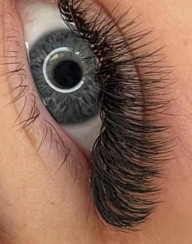 Volumenwimpern-Extensions (2D–10D) Mehrere feine Kunstwimpern werden zu Fächern geformt und auf die Naturwimpern appliziert – für einen vollen, dichten und dennoch leichten Wimpern-Look. Individuell anpassbar von natürlich bis dramatisch. Perfekt für mehr Ausdruck ohne Mascara.