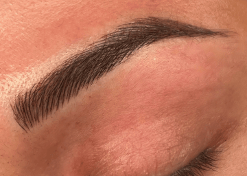 Kombination aus Microblading und Powder Brows – natürliche Härchenoptik im vorderen Bereich, sanfte Schattierung im hinteren Teil. Für maximale Definition mit weichem Verlauf.
